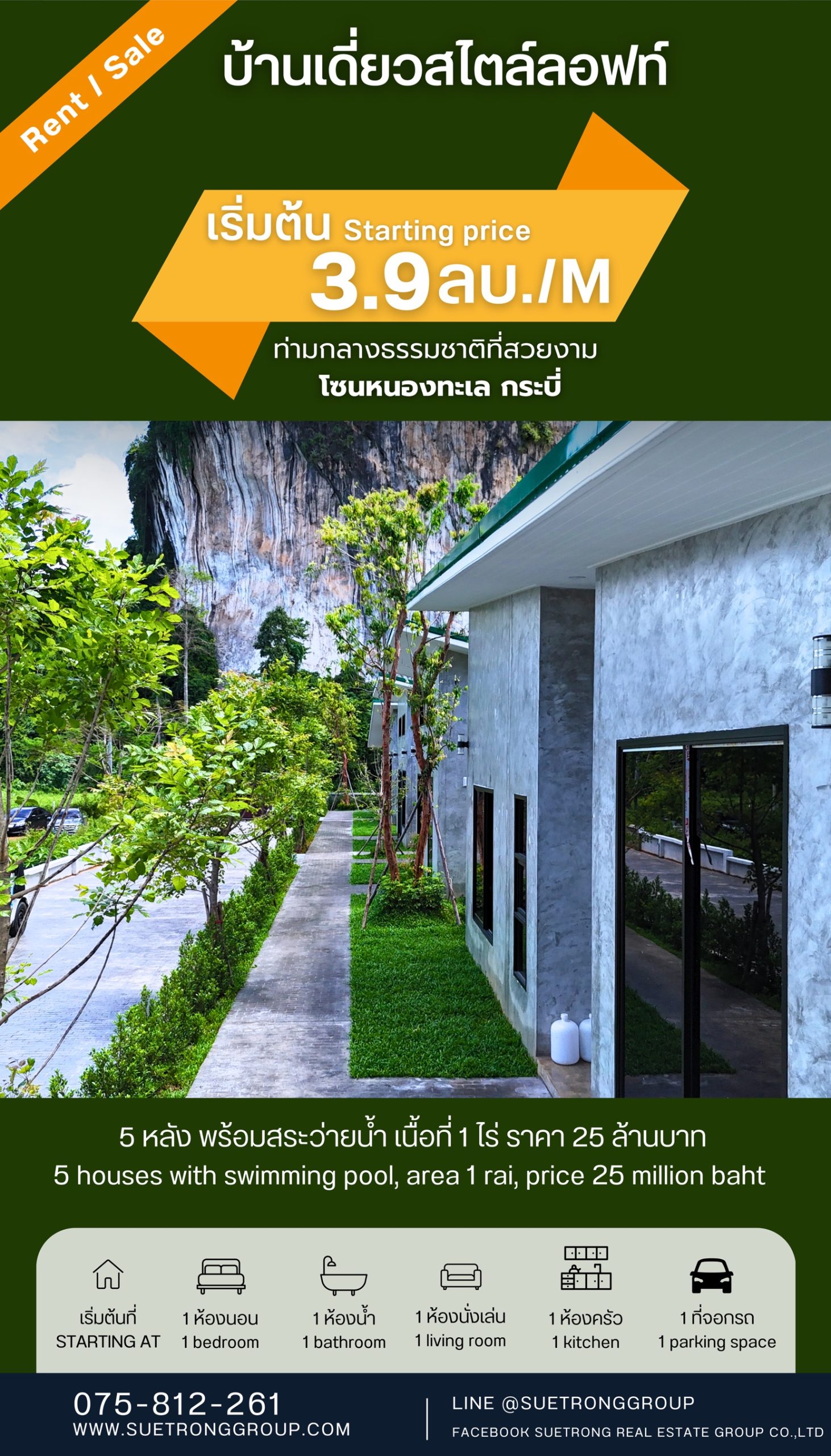 🚩บ้านพักตากอากาศให้เช่า / ขาย วิวภูเขา ใกล้หาดอ่าวนาง จ.กระบี่