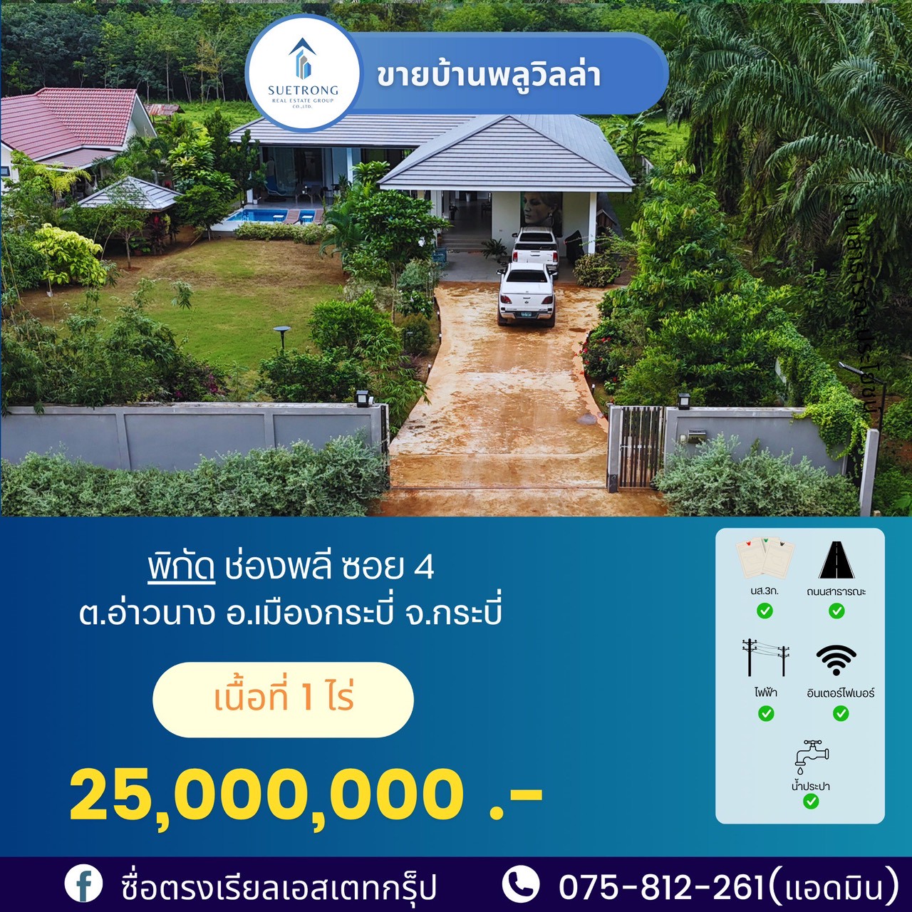 ทรัพย์แนะนำ ขาย 33 ขายพูลวิลล่า วิวภูเขา ช่องพลี ซอย 4 กระบี่/เมืองกระบี่/อ่าวนาง 25,000,000 บาท 3 4 - 196.14 ตร.ม. ขายบ้านมือสอง ขายพูลวิลล่า
